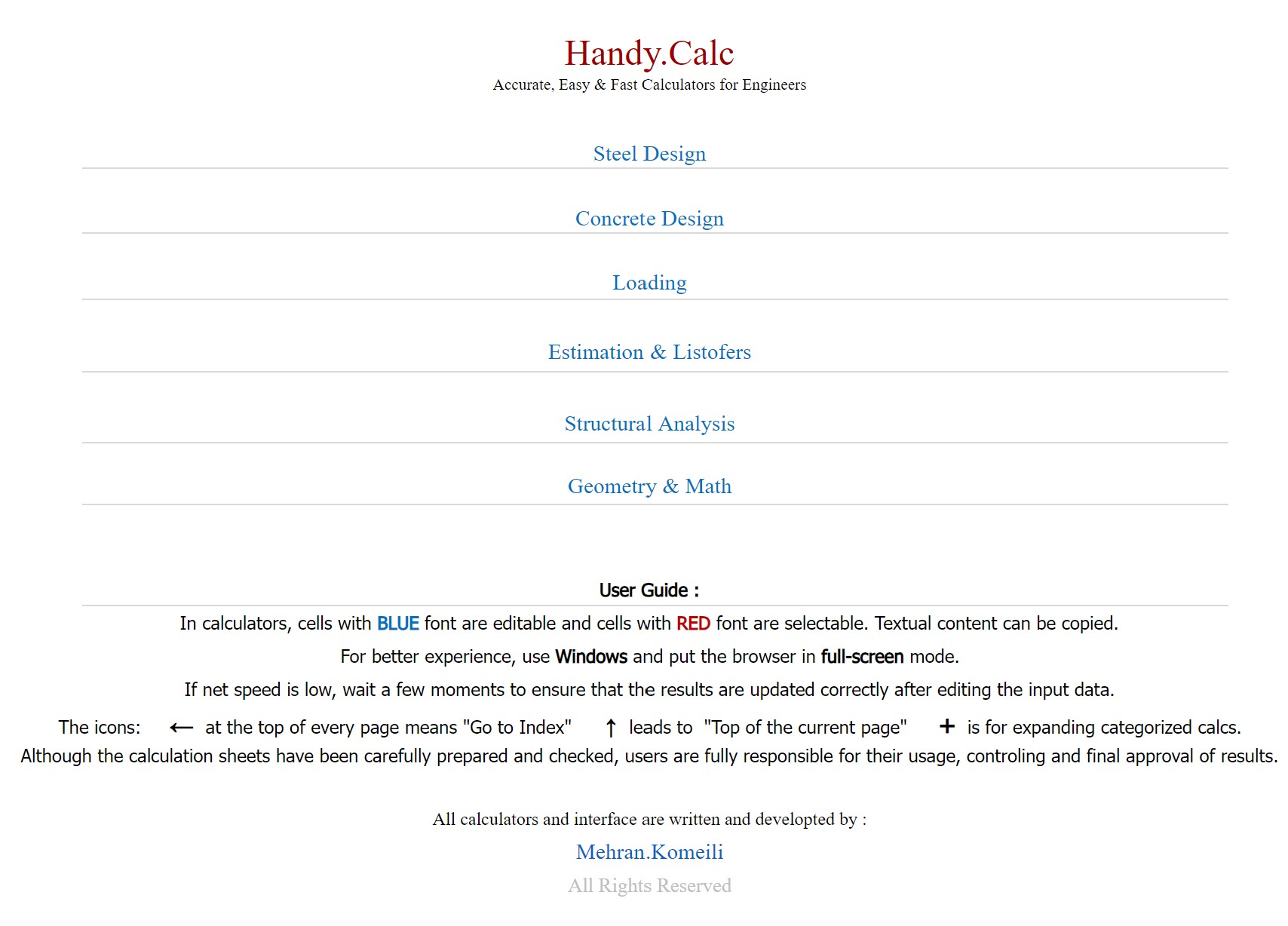 To facilitate this, I have developed an online platform (Handy.Calc) to provide accessibility to the spreadsheets I have previously authored: